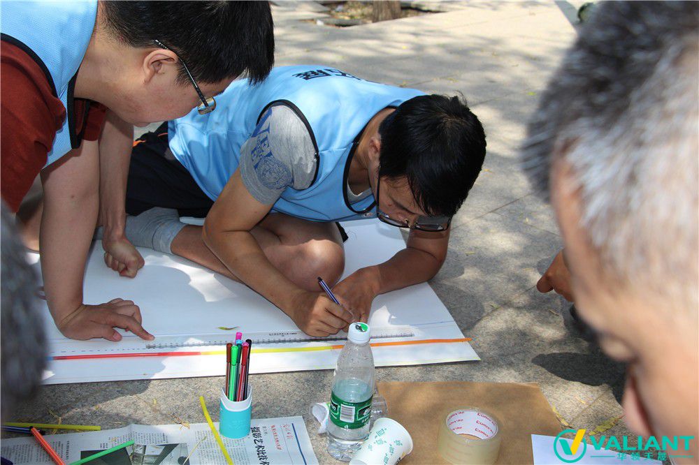 這是一項(xiàng)漸進(jìn)的高空項(xiàng)目,學(xué)員在穿戴好安全裝備后,所有隊(duì)員二人一組,在規(guī)定時(shí)間內(nèi)沿著巖壁的木道行走,直至本小組所有隊(duì)員的手觸及多巖壁上方。