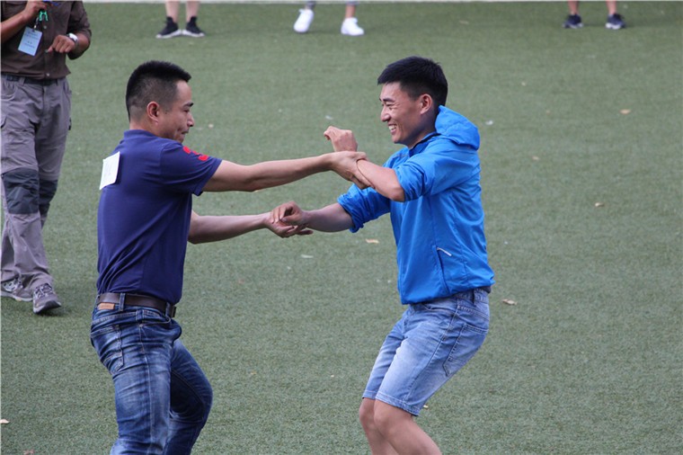 這是一個強(qiáng)調(diào)競爭與配合的項目,要求學(xué)員夾住氣球,用最快的速度跑向終點。