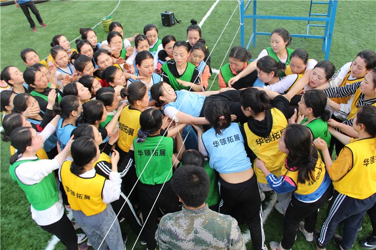 3、將學員分成三個組,隊員戴上眼罩后,布置項目第一階段任務(三個小組分別做出正三角形,正方形、圓形,時間為15分鐘);