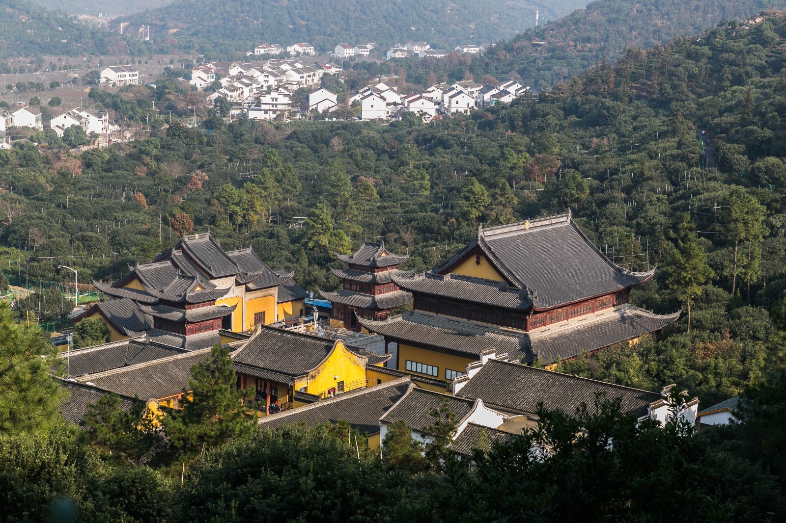 在蘇州西部,在高新區(qū)大陽山的北麓,有一方凈土,一塊在現(xiàn)代工業(yè)文明洗禮中留存下來的一方原生態(tài)的天然氧吧,這里三面環(huán)山,綠樹成蔭。沒有城市的喧囂,只有鳥兒的歌唱,沒有林立的高樓大廈,只有掩映其中的農(nóng)家小院;沒有工業(yè)污染的臭水溝,只有清澈的小溪和碧波蕩漾的胡泊,這里還有茶林、楊梅、梨樹林以及掩映其中的阡陌小路,這里不僅有寄托心靈的寺廟,還有千百年來文人墨客的歷史痕跡,這就是樹山村。