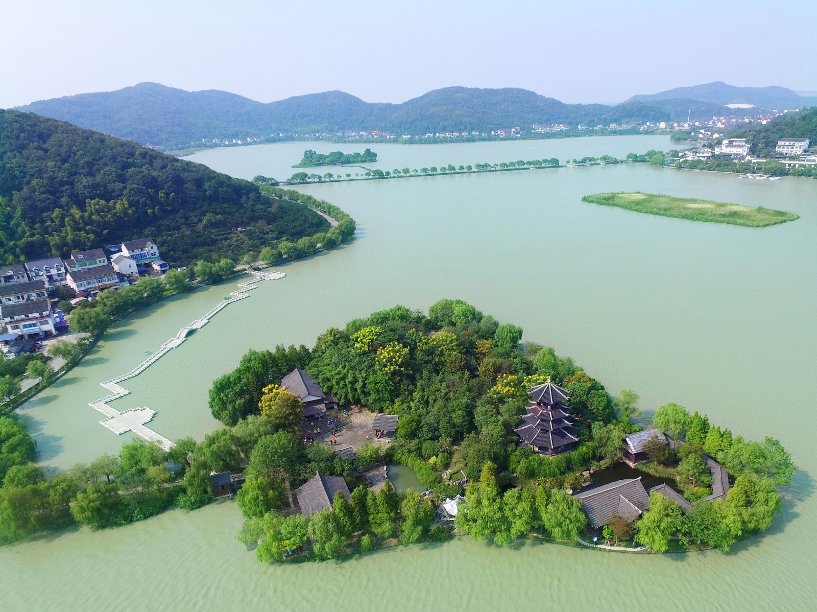 邊山,湖中堤,湖內(nèi)島,自然別致,相得益彰